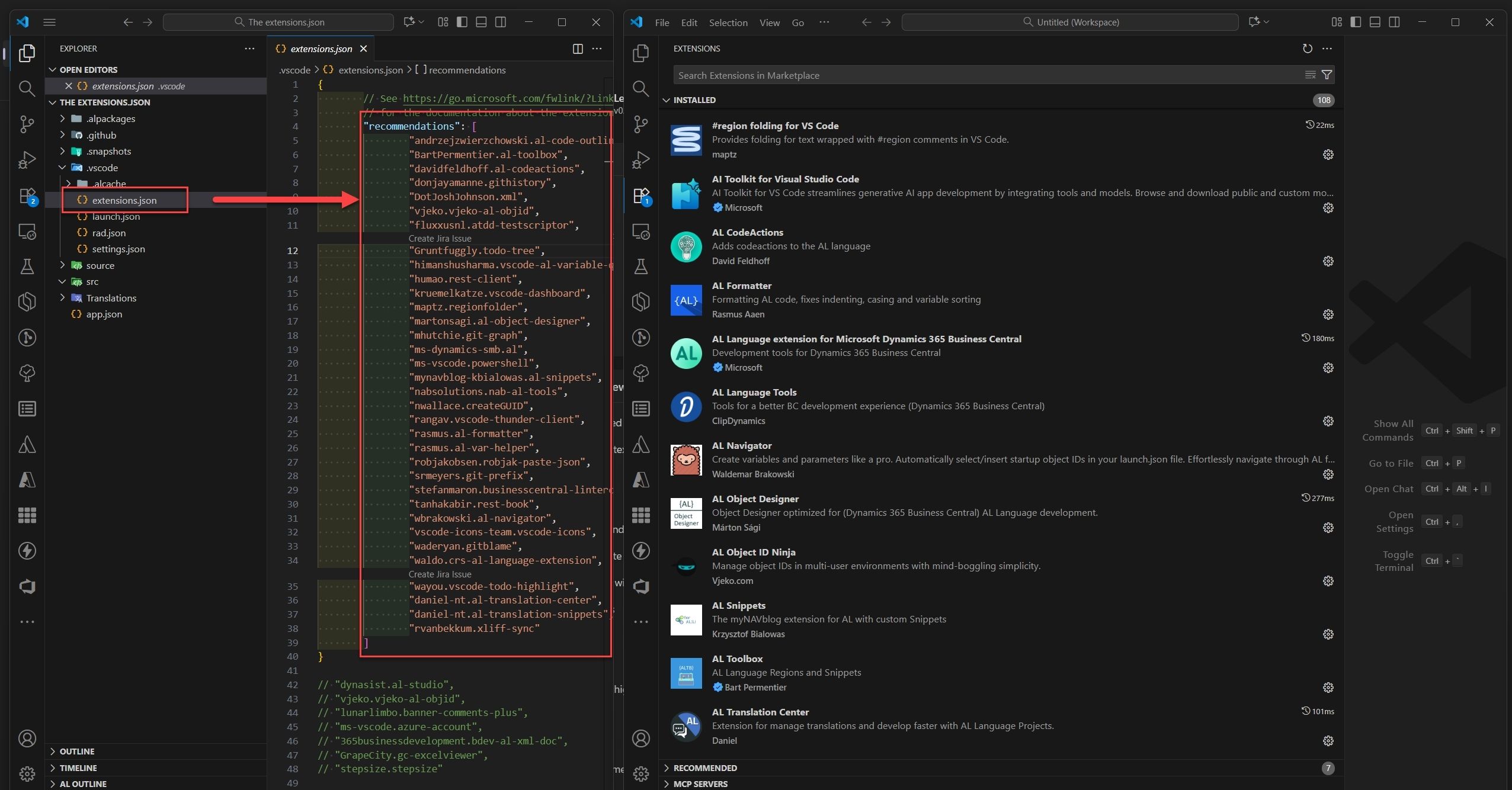 Start a new VS Code project? Easy, Just one command AL: GO! Scaffold an AL project, then boom.. launch.json, check. Maybe settings.json if I’m feeling fancy. But extensions.json? Never even crossed my radar.