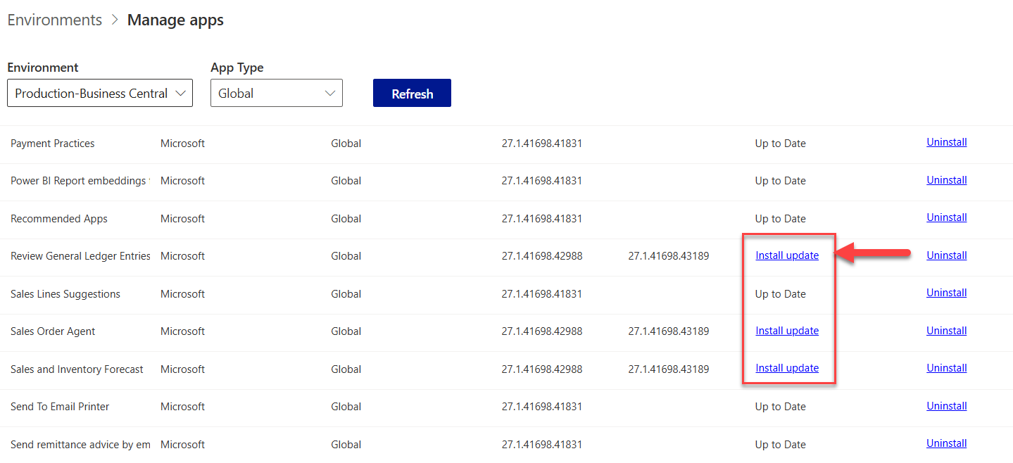 - Does this update all companies? Yes. Admin Center updates the app at the environment level, so it is available to all companies in that environment.